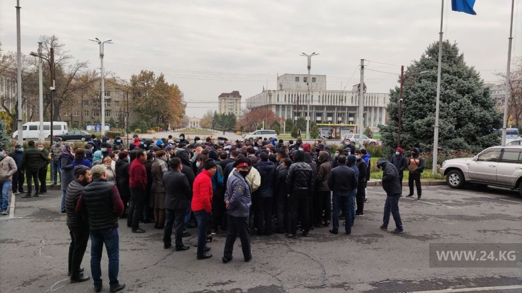 К протестующим вышел и. о. мэра столицы Балбак Тулобаев. Граждане спросили, законно ли увольнять человека, если он находится на больничном, и. о. мэра ответил, что нет.