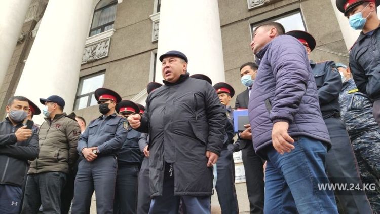 Балбак Тулобаев вышел к протестующим возле мэрии Бишкека.