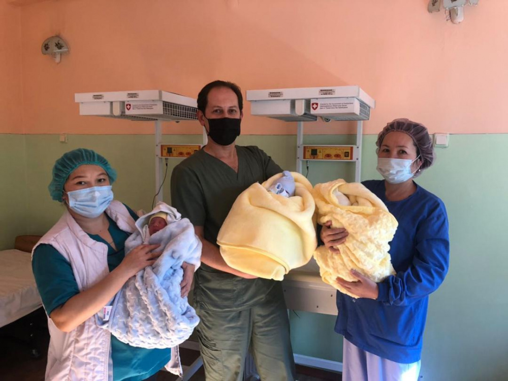 Фото Минздрава. В Бишкеке тройню назвали Садыр, Жапар, Нургожо