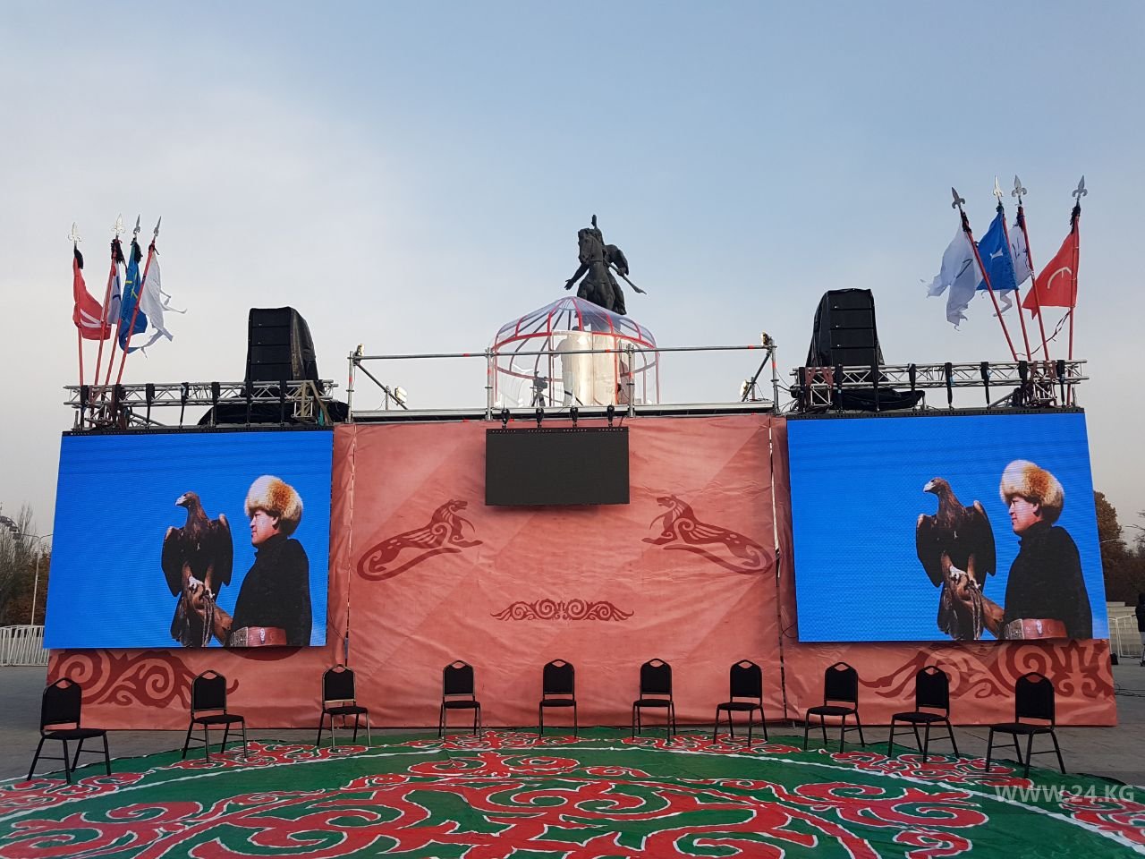 На центральной площади Ала-Тоо манасчи Доолот Сыдыков начал рассказывать эпос, чтобы попасть в Книгу рекордов Гиннесса.