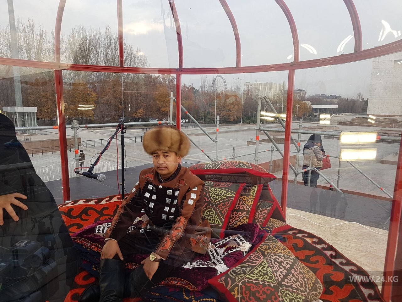 Манасчи разместился в стеклянной юрте высотой пять метров. Он будет рассказывать эпос непрерывно.