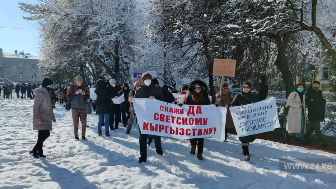 В Бишкеке проходит очередной митинг против референдума и изменения Конституции.