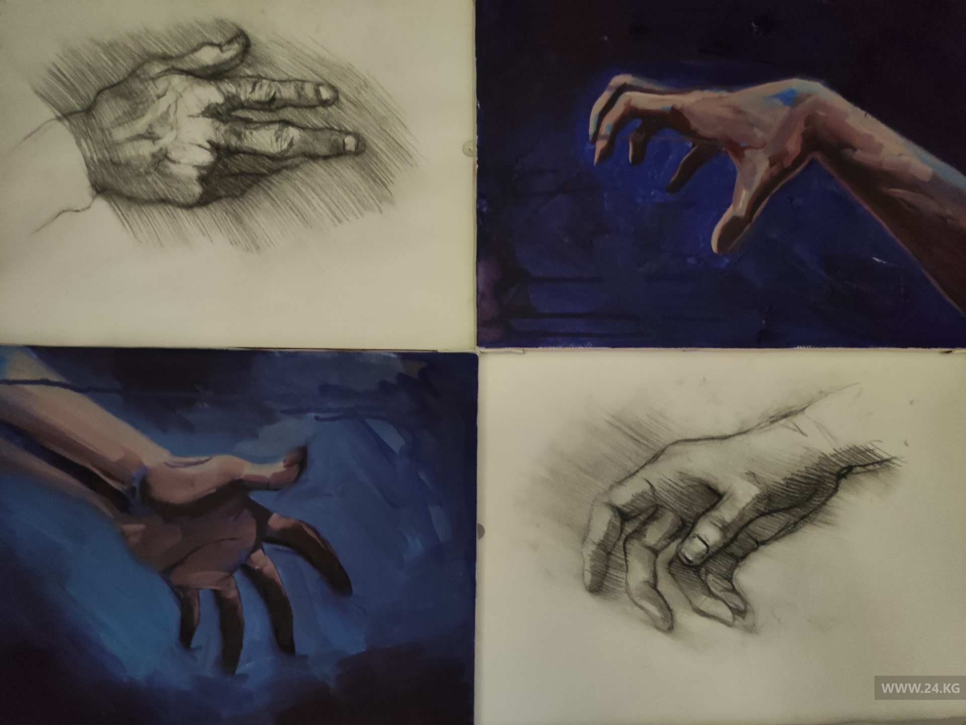 «Именно 40 мужских рук, потому что так сложилось, что в нашей культуре 40 — это сакральное число. Было 40 кыргызских племен, 40 лучей солнца на нашем флаге, движение «Кырк чоро». После марша 8 марта, когда меня задержали, там были представители этого движения, но они были не с нами, а с правоохранительными органами. Это сильно повлияло на нас. Сестренка начала рисовать руки, а затем пришла идея создать целую инсталляцию. Во время работы над ней мы повторно это все переживали, поэтому так долго ее делали: начали в апреле и закончили только в ноябре», — рассказывает Айзат Русланова.