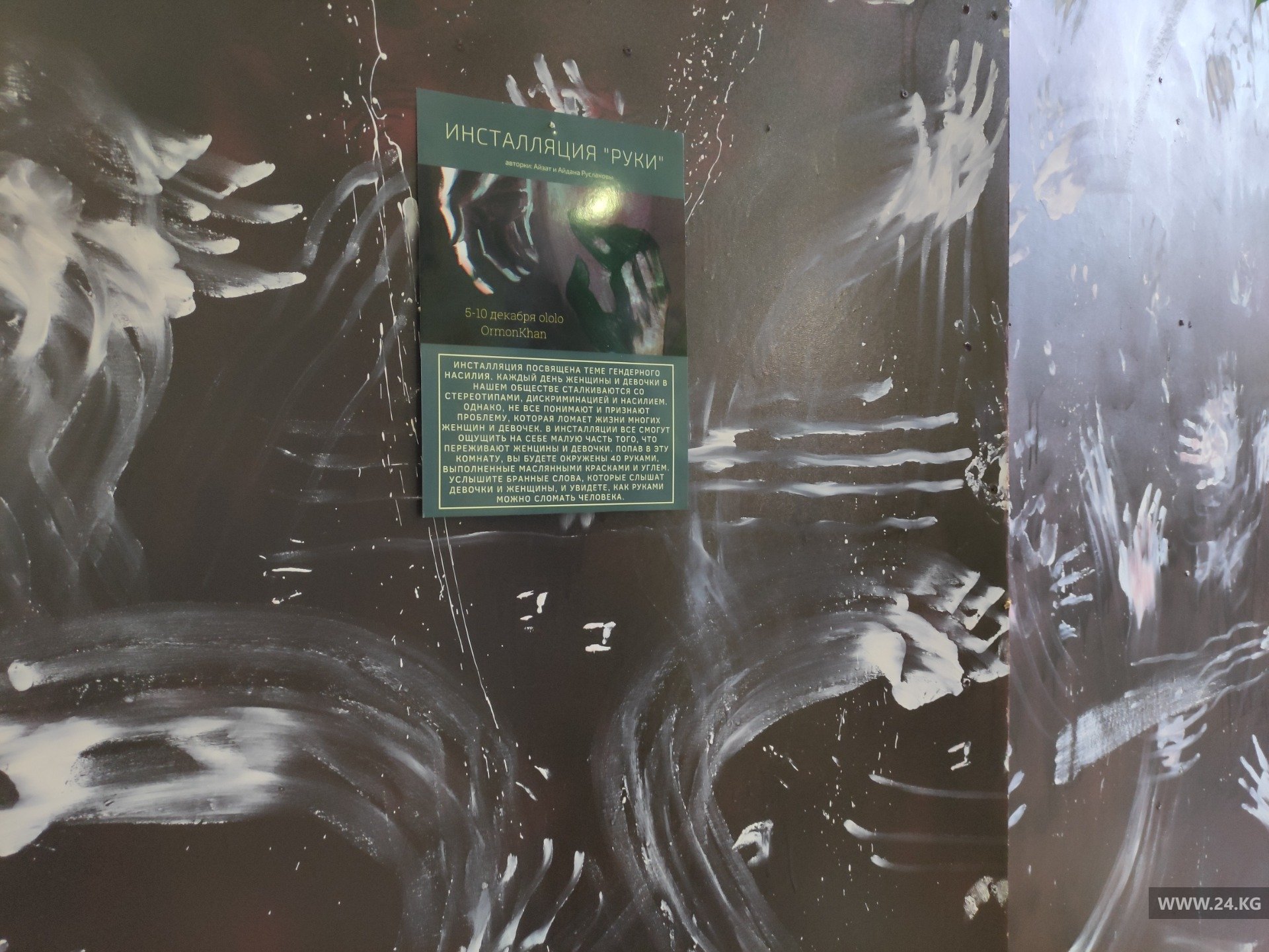 По словам Айзат Руслановой, в маленькой черной комнате можно увидеть 40 нарисованных мужских рук. Они выполнены масляными красками. Если приглядеться, руки изображены в движении.
