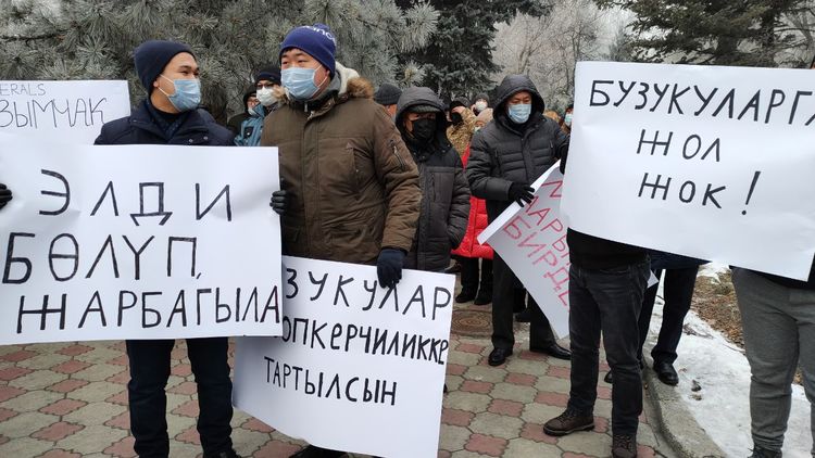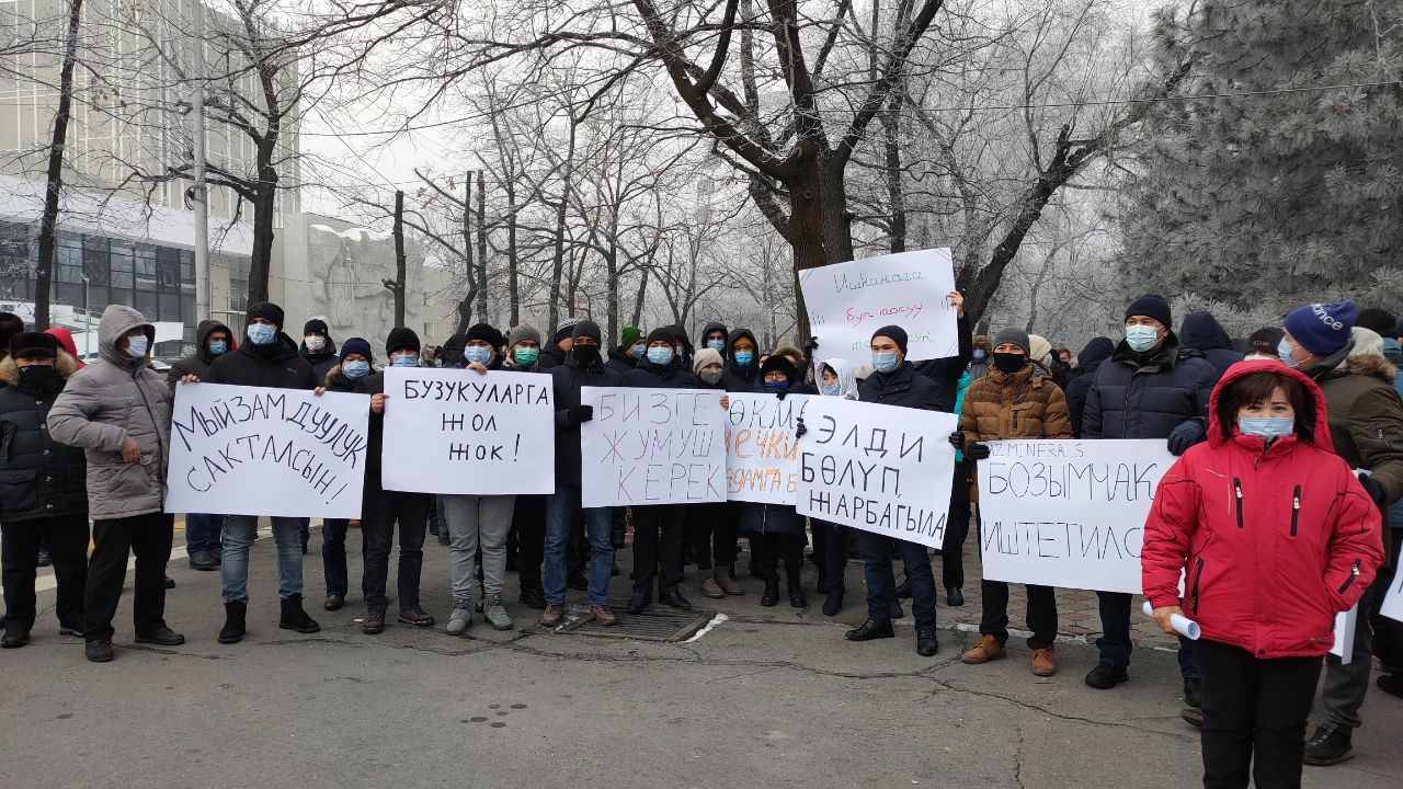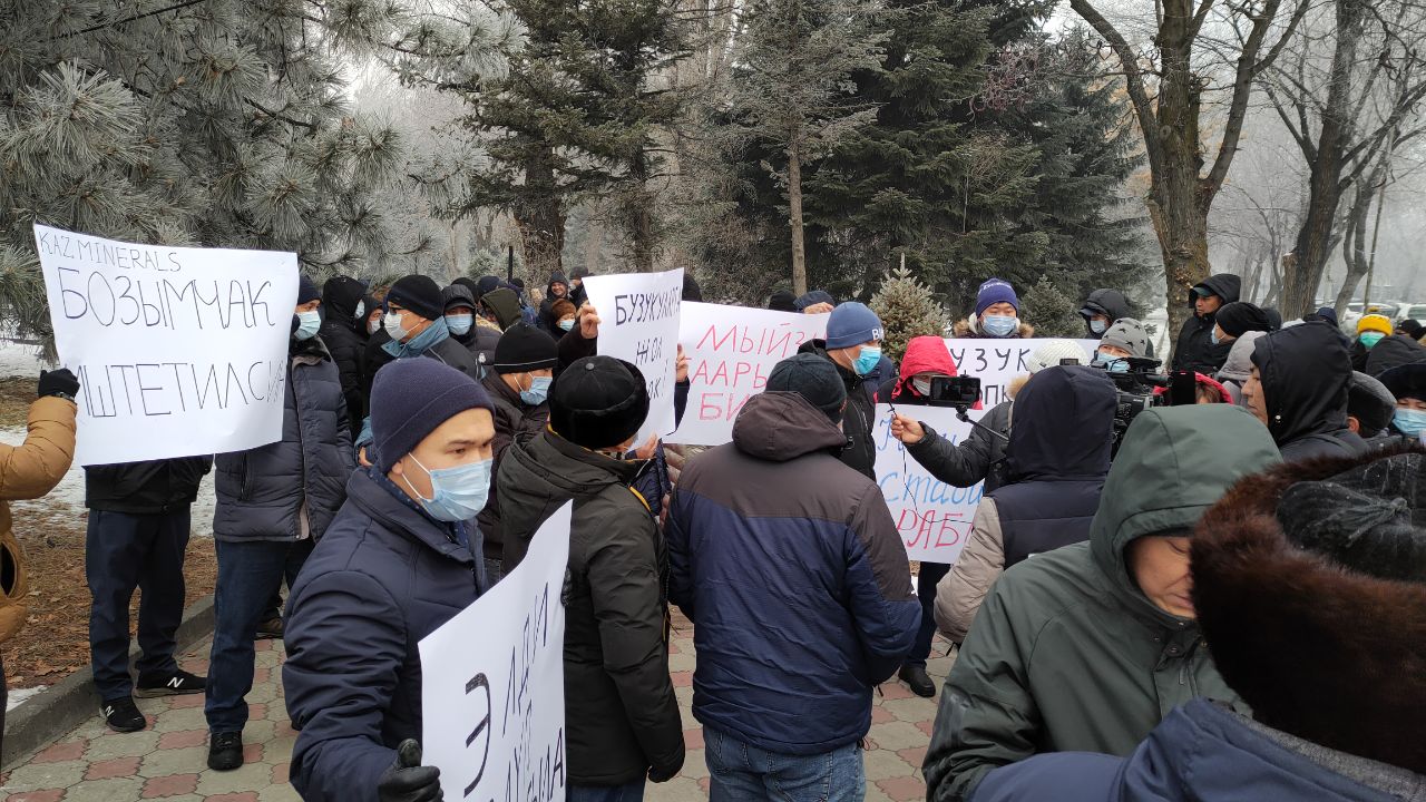 Возле Дома правительства митингуют работники горнодобывающего комплекса «Бозымчак», расположенного в Джалал-Абадской области.