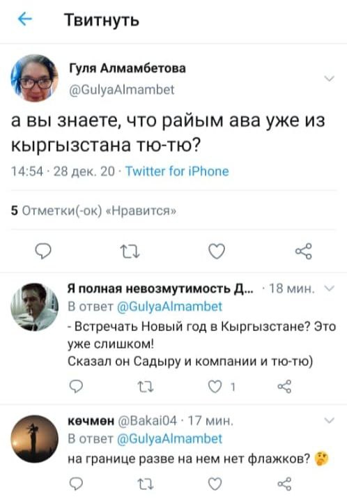 Парламентарий также посоветовал Гуле Алмамбетовой «заниматься своими делами». «Кто такая Гуля Алмамбетова? Какое отношение она имеет к нашей семье? Она осталась без работы и сидит, делать ей нечего. Пусть занимается своими делами. Уверяю, Райымбек Матраимов находится в Кыргызстане и никуда не уезжал», — сказал он.