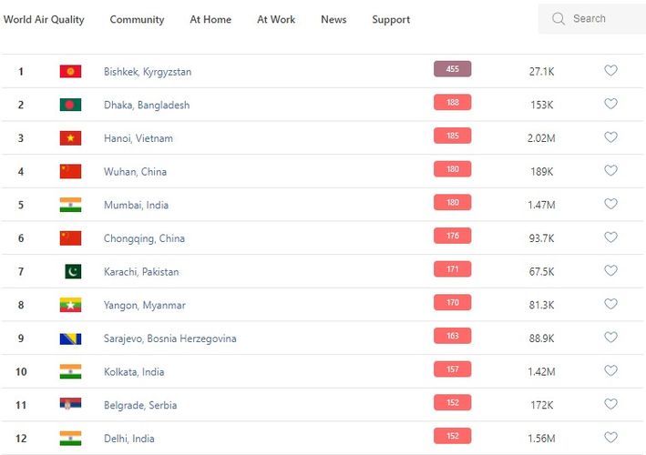В 19.30 статус города отмечен как «опасный» (Hazardous). Индекс качества воздуха, по данным сайта, составляет 455 (AQI).