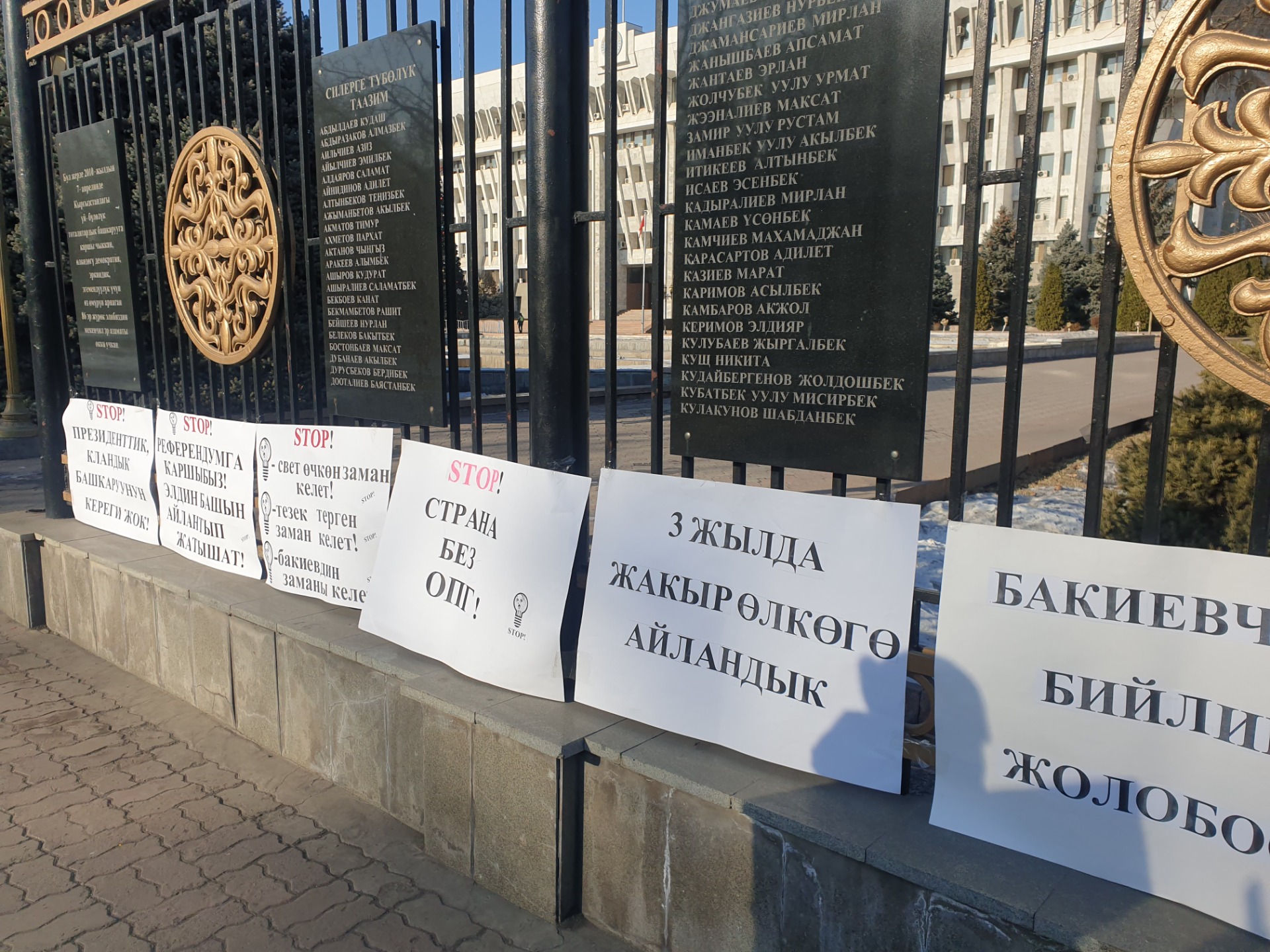 По словам участницы акции протеста Нургуль Кожомбердиевой, сейчас к власти рвутся люди, чья репутация запятнана связью с ОПГ, а также режимом беглого президента Курманбека Бакиева.