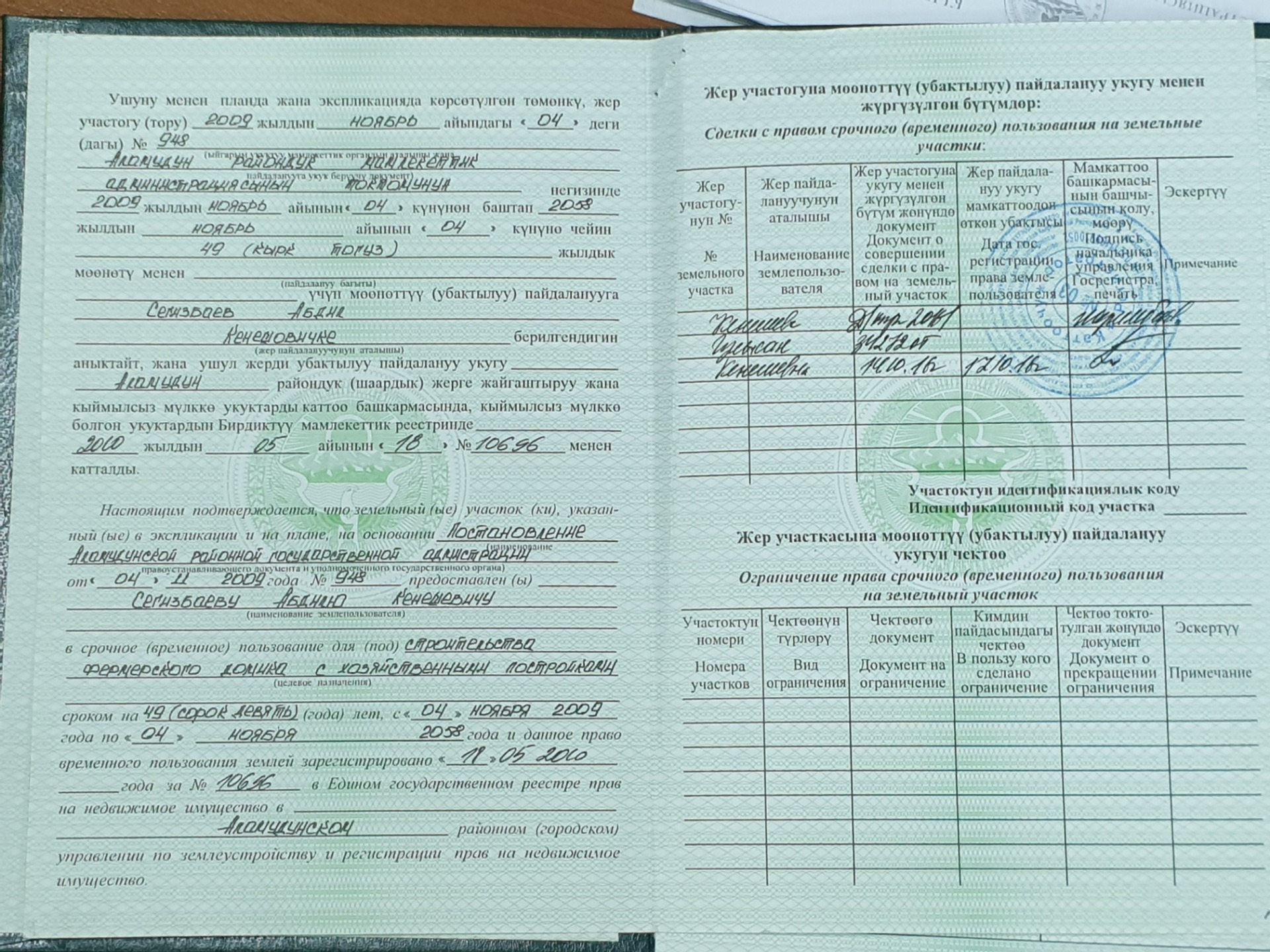 «Я видел, как вырубали сад, и предложил односельчанам продать мне эти участки по две сотки. Там не капстроения, а легкие конструкции. На этой земле лежит инвентарь, есть будка, где сидит охранник. В этом году мы получили первый доход от продажи яблок в 300-400 тысяч сомов», — сказал он.