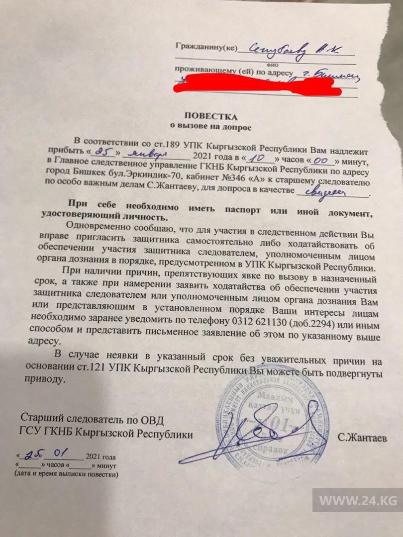 «Абдиль Сегизбаев еще не вышел с допроса, хотя прошло более семи часов. Его вызвали на допрос в качестве свидетеля», — заявили редакции.