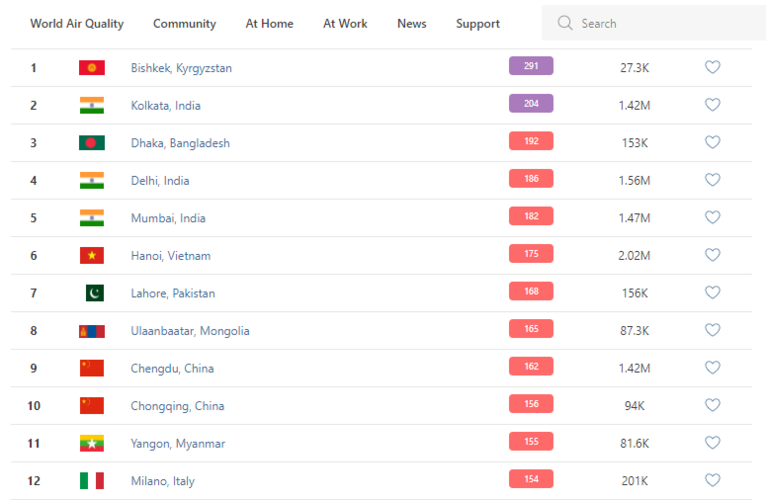 В рейтинге крупнейших городов мира по качеству воздуха World Air Quality Бишкек вновь на первом месте.