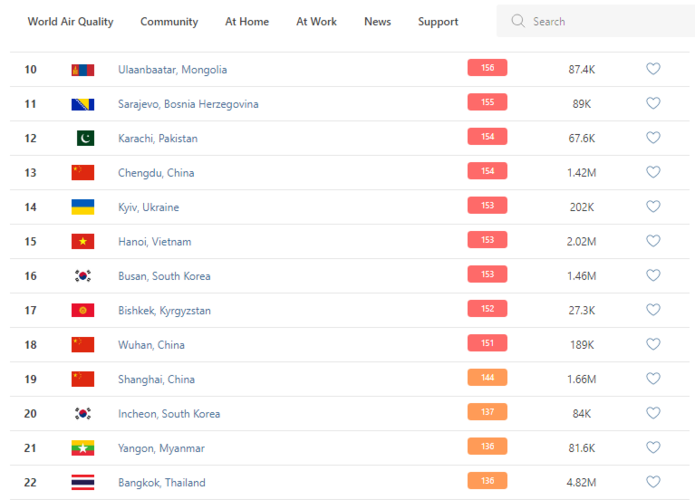 В 19.30 статус города отмечен как «нездоровый для чувствительных групп» (unhealthy). Индекс качества воздуха, по данным сайта, составляет 152 (AQI).