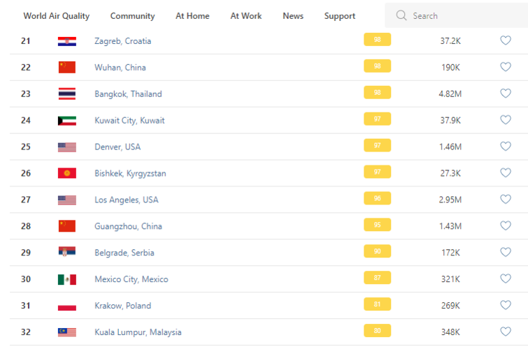 В рейтинге крупнейших городов мира по качеству воздуха World Air Quality Бишкек поднялся на 26-е место.