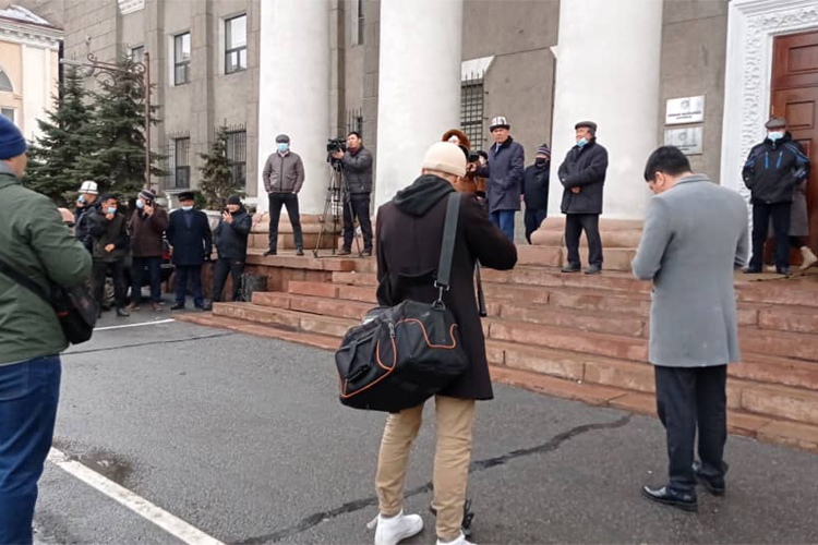 К зданию столичной мэрии вышли недовольные назначением и. о. мэра Бактыбека Кудайбергенова. Об этом 24-kg.com сообщили читатели.