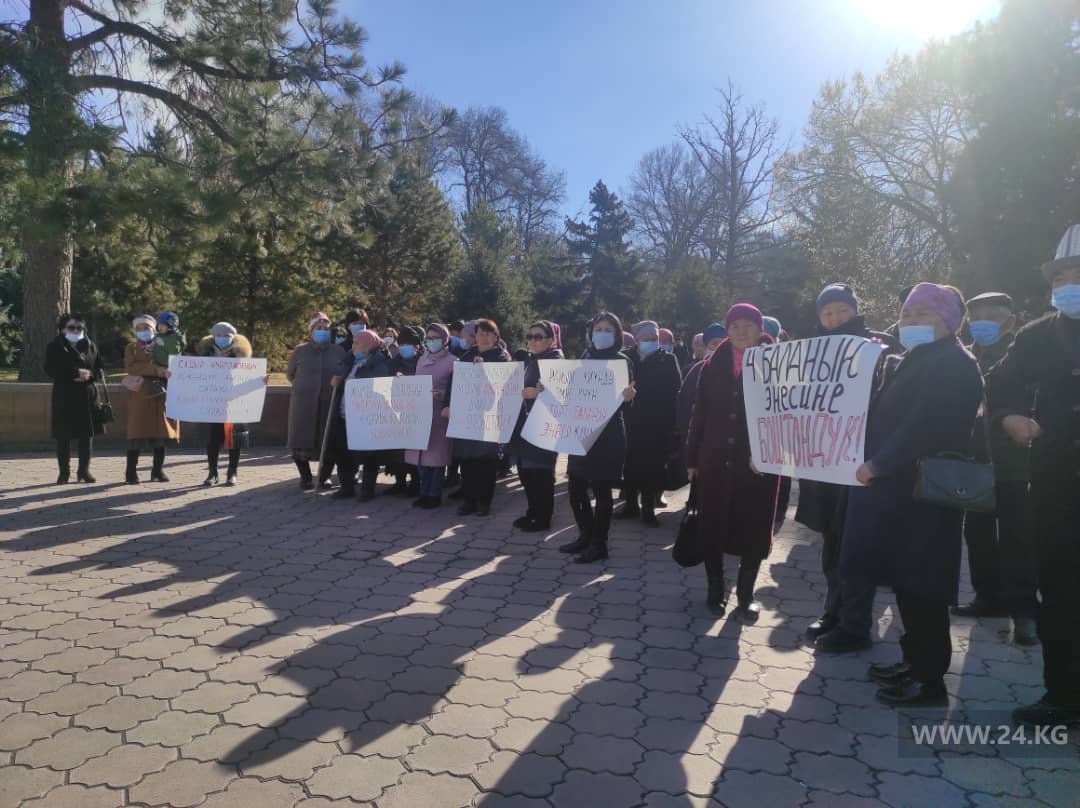 На акцию протеста вышли родственники сотрудницы Таш-Мойнокского айыл окмоту Жылдыз Чодобаевой.