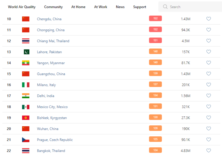 В рейтинге крупнейших городов мира по качеству воздуха World Air Quality Бишкек поднялся на 19-е место.