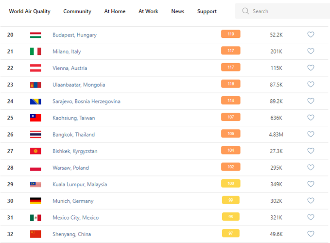 В рейтинге крупнейших городов мира по качеству воздуха World Air Quality Бишкек поднялся на 27-е место.