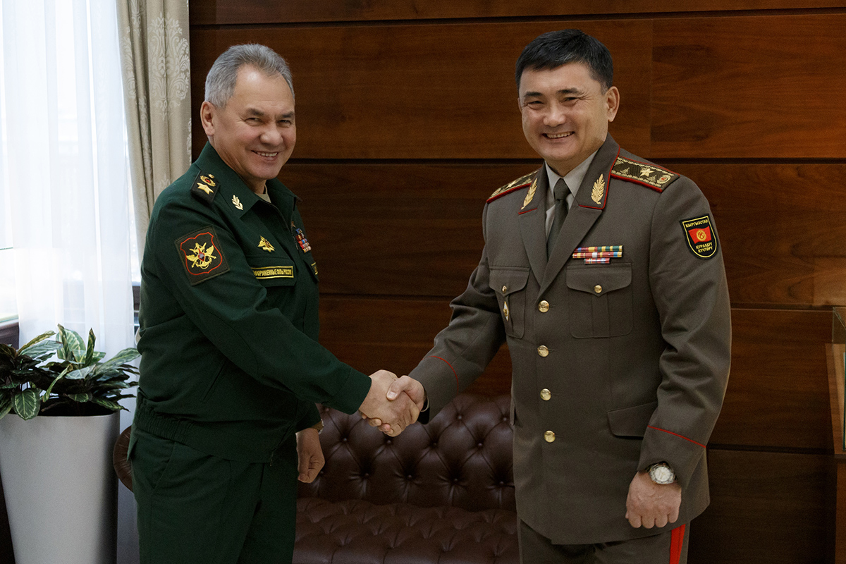 Состоялась встреча министра обороны КР генерал-майора Таалайбека Омуралиева с министром обороны РФ генералом армии Сергеем Шойгу. Об этом сообщает управление информационного обеспечения Генштаба ВС КР.