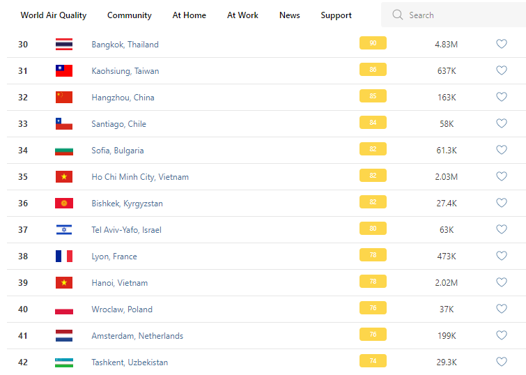 В рейтинге крупнейших городов мира по качеству воздуха World Air Quality Бишкек опустился на 36-е место.