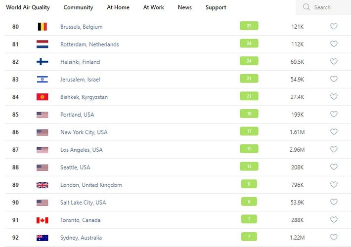 В 8.30 статус города отмечен как «умеренный». Индекс качества воздуха, по данным сайта, составляет 21 (AQI).