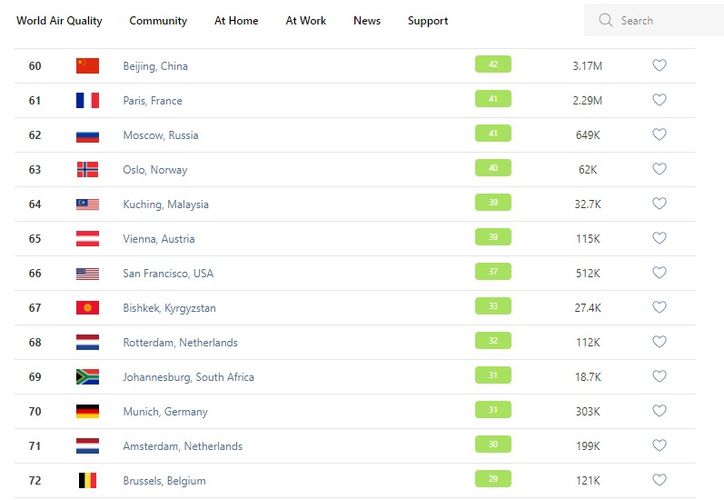 В 8.30 статус города отмечен как «хороший». Индекс качества воздуха, по данным сайта, составляет 33 (AQI).