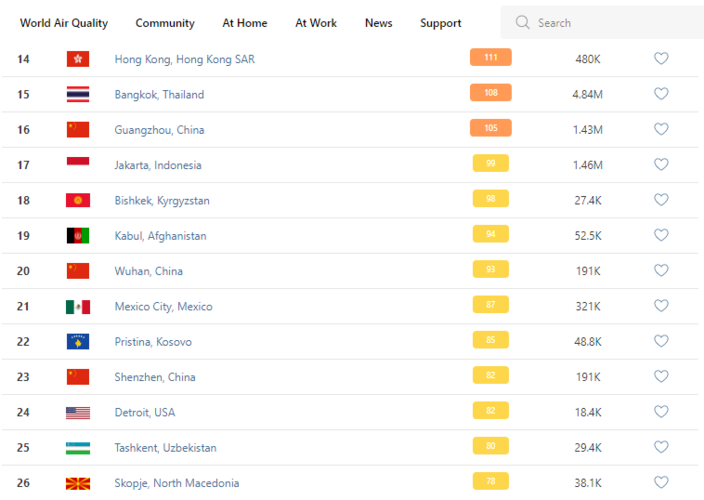 В рейтинге крупнейших городов мира по качеству воздуха World Air Quality Бишкек поднялся на 18-е место.