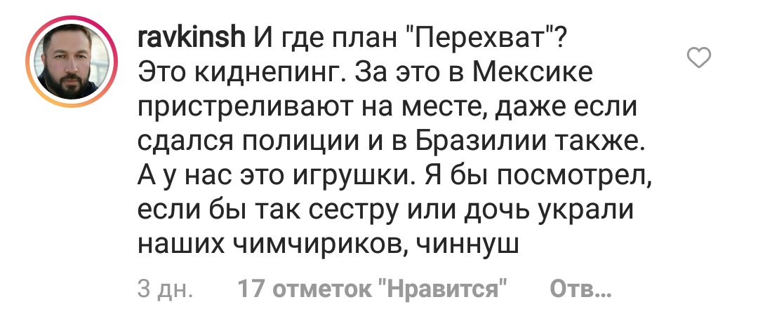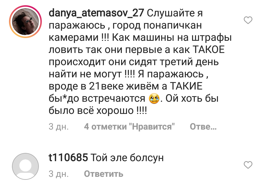 В комментариях под видео похищения девушки три дня назад аккаунт km_alexs подшутил, что скоро состоится свадьба. Однако после опубликованной новости о том, что девушку убили, он у себя на странице поделился высказыванием, что «жениться нужно только по настоящей любви...»