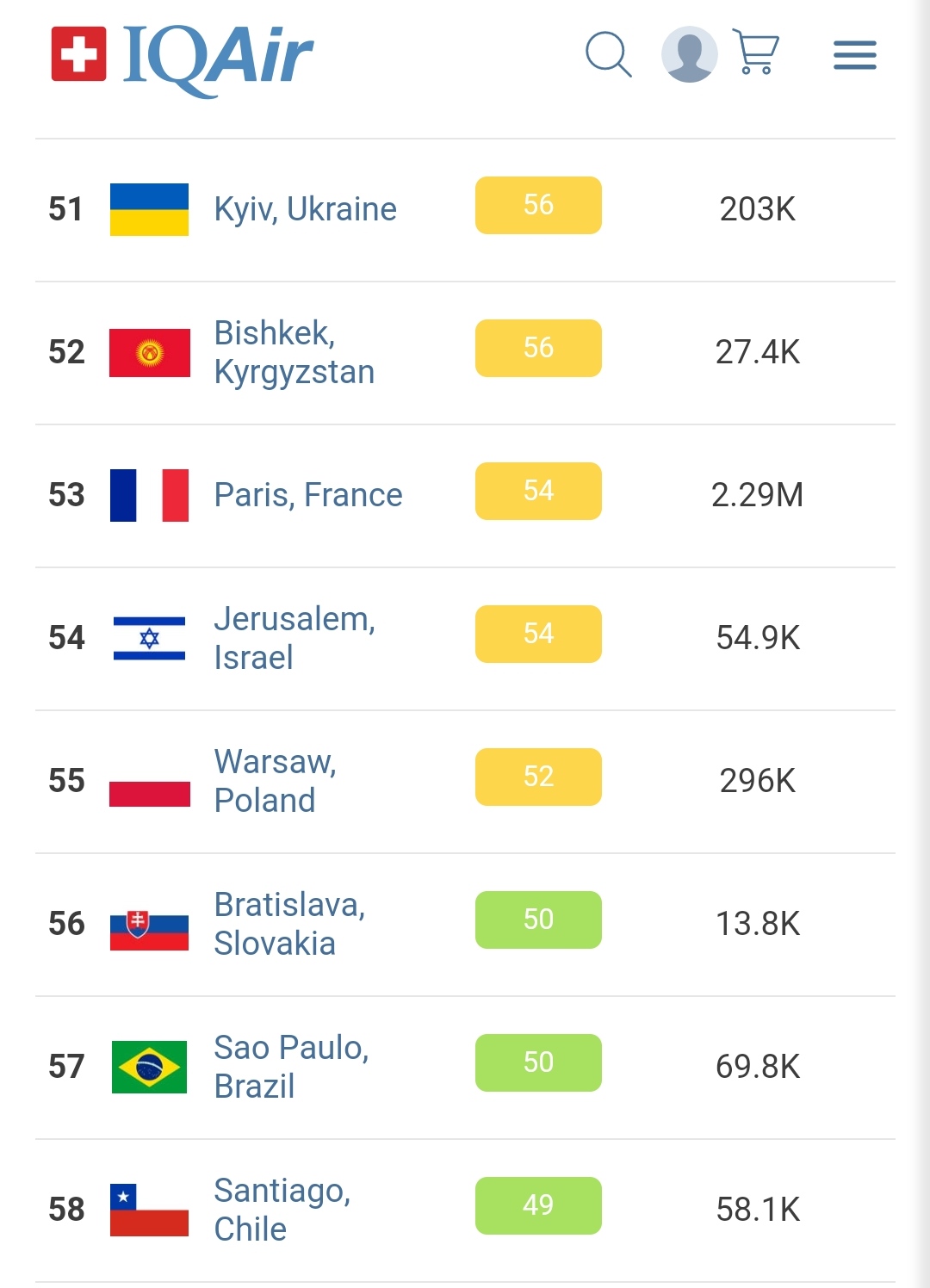 В 19.30 статус города отмечен как «умеренный». Индекс качества воздуха, по данным сайта, составляет 56 (AQI).