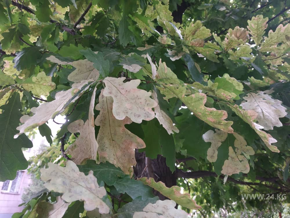 Эпопея с дубами в Бишкеке длится уже больше десяти лет. Весной 2011-го массово увеличилась численность вредителей, с которыми многолетние растения не смогли справиться. Тогда богатую листву этих деревьев насекомые уничтожили буквально за несколько недель.Это заставило руководителей служб и ведомств собраться за одним столом, чтобы выработать комплекс мер по спасению зеленых насаждений города и приграничных районов. Определить вид вредителя помогли ученые Польского института леса и Западно-Венгерского университета, им оказался дубовый минирующий пилильщик. После чего созданная рабочая группа предложила апробировать биопрепарат лепидоцид СК-М и установить феромоно-клеевые ловушки.