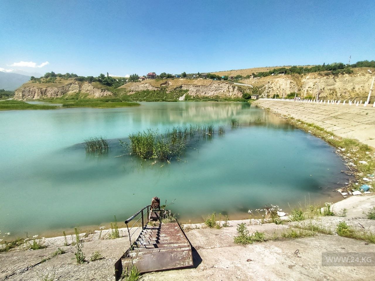 Это замысловатое сооружение, которое на окраине Бишкека могут увидеть те, кто направляется в Аламединское ущелье, на самом деле не водохранилище, и даже не водозабор. Главная задача Аламединского отстойника — очищать от ила и глины воду, поступающую из одноименной реки, прежде чем она попадет на поля и в ирригационную систему столицы.