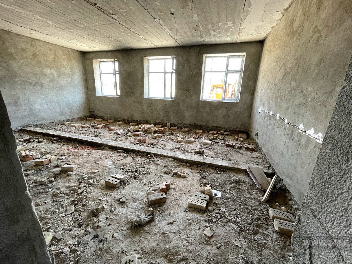 Началось и восстановление здания школы. Это единственный объект, который ремонтируется за счет средств государства.