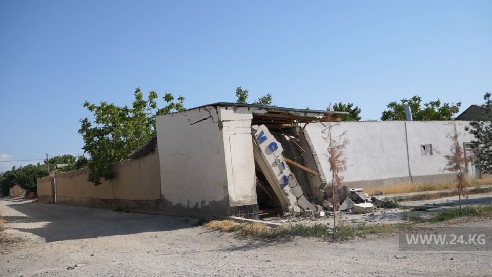 У жительницы села Арка Гулайым Турдалиевой был продуктовый магазин в приграничной зоне. Он полностью разрушен. И до сих пор его не восстанавливают.