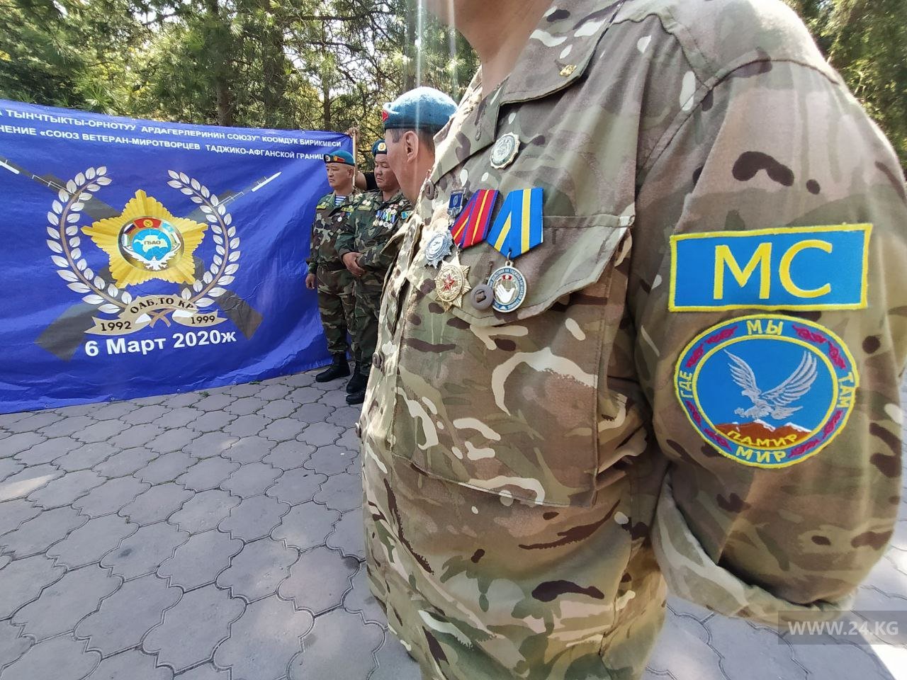В Бишкеке к Дому правительства на митинг вышли ветераны-миротворцы, в 1990-е служившие на таджикско-афганской границе. Они требуют приравнять их к участникам боевых действий.