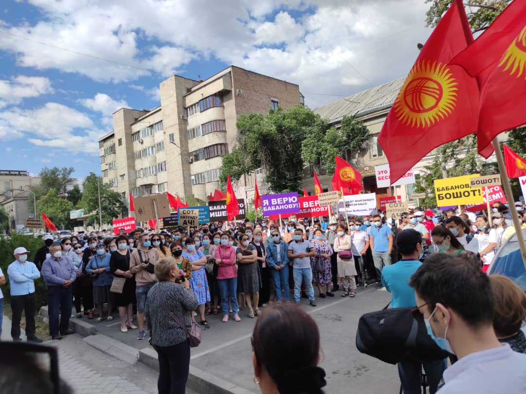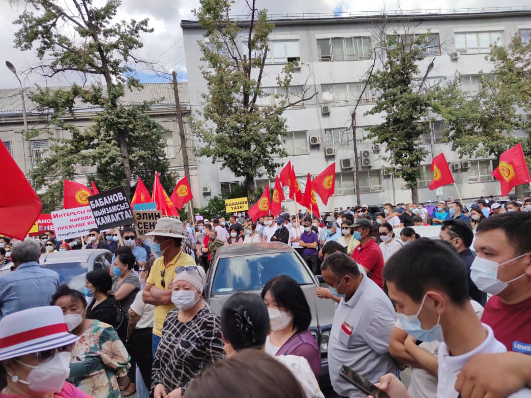 В Бишкеке около здания городского суда собрались сторонники экс-премьер-министра Омурбека Бабанова.