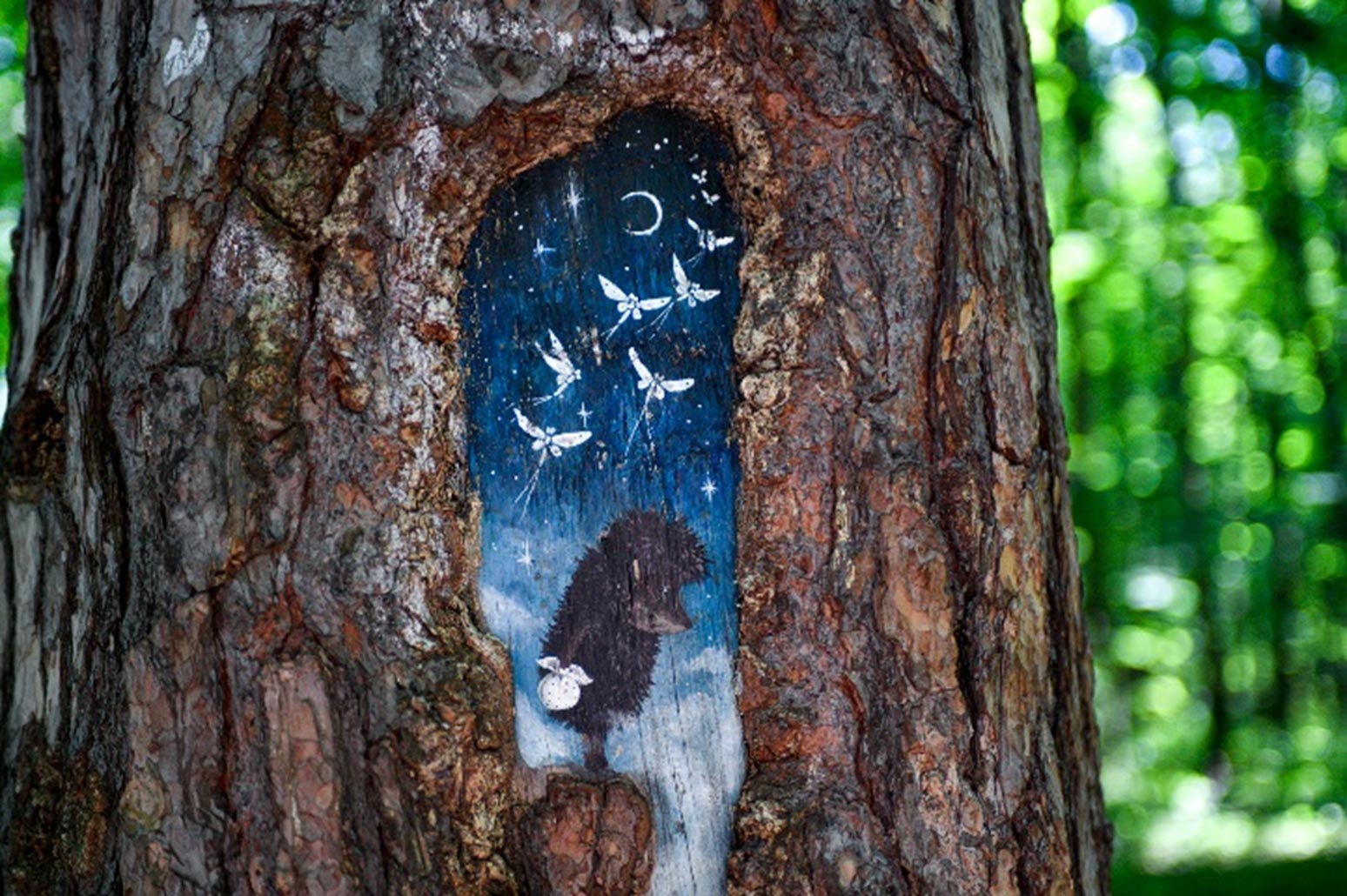 Для размещения будущих картин специалисты подбирают деревья с большими вертикальными трещинами-морозобоинами, дуплами и оголенными участками ствола.