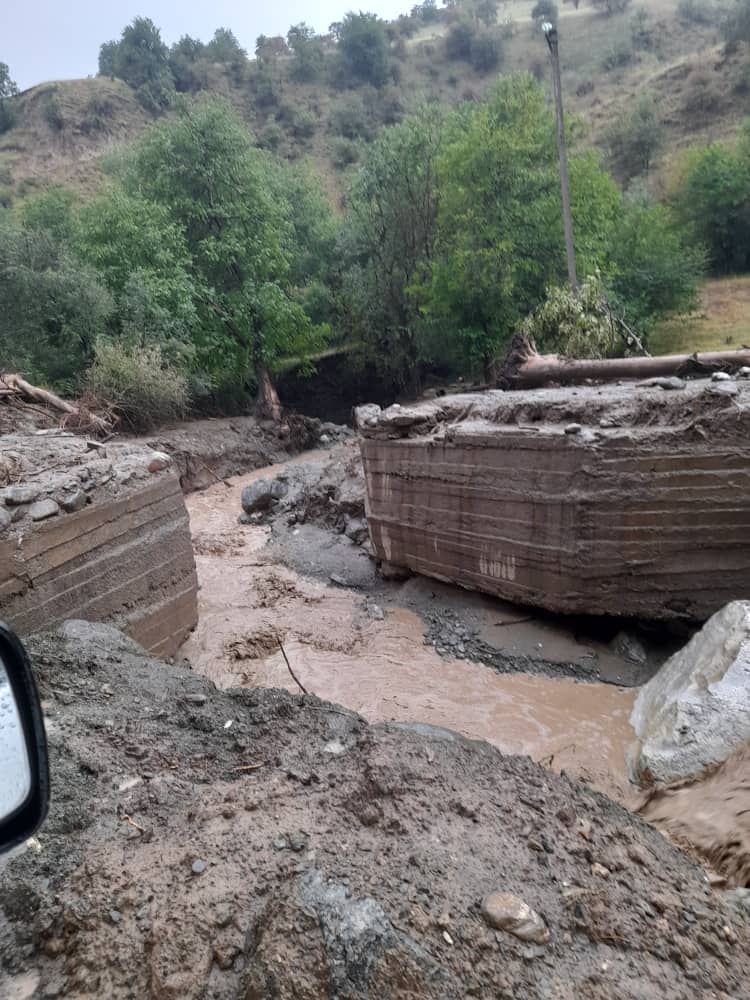 Отмечается, что также селевой поток повредил нижнюю часть внутрихозяйственного моста, соединяющего улицы Карагер и Садырмат.