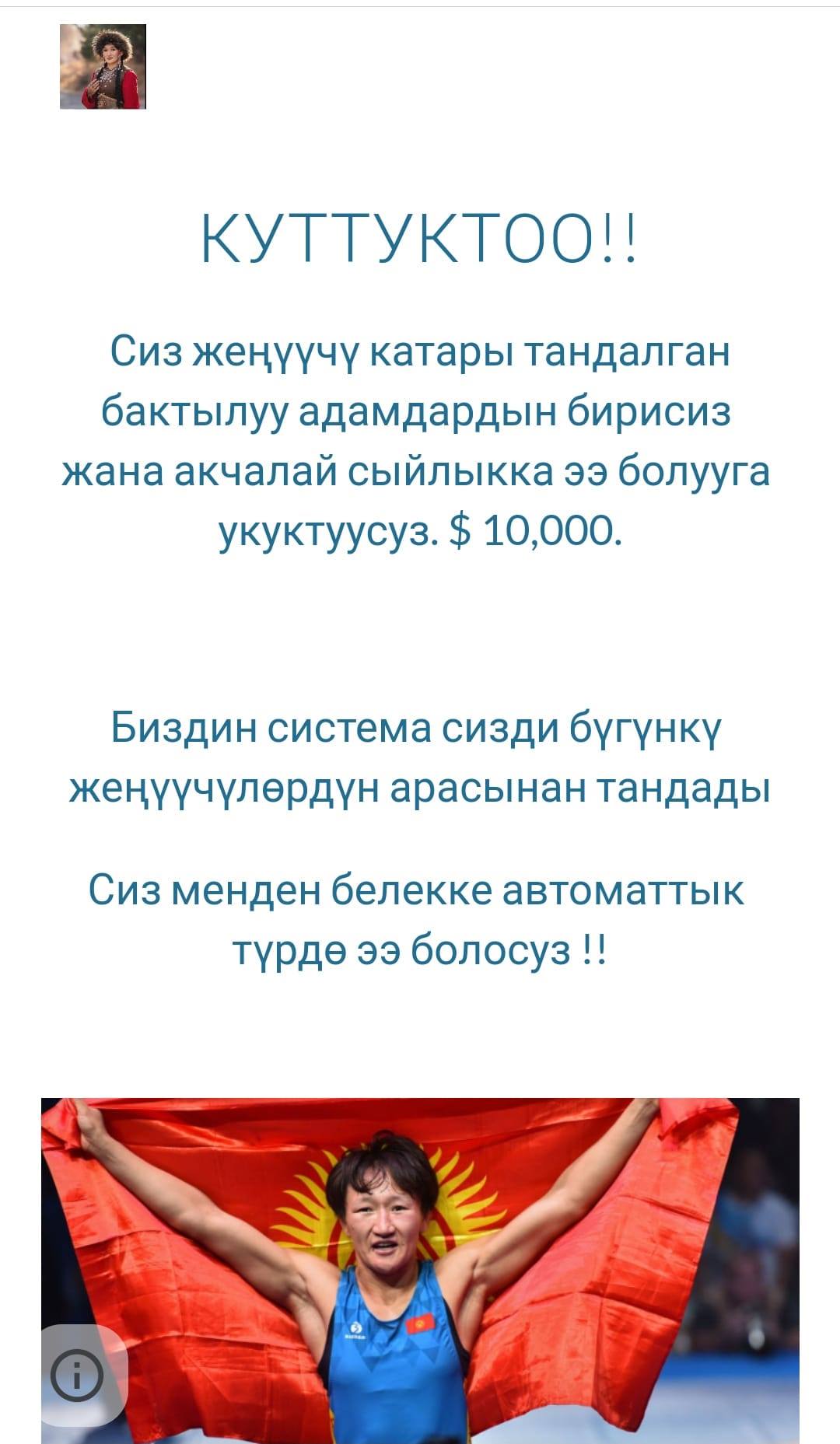 Олимпийский призер Айсулуу Тыныбекова призвала кыргызстанцев не верить фейковым аккаунтам, созданным под ее именем. Об этом она сообщила на своей странице в соцсетях.