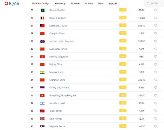 В 18.00 статус города отмечен как «умеренный». Индекс качества воздуха, по данным сайта, составляет 76 (AQI).