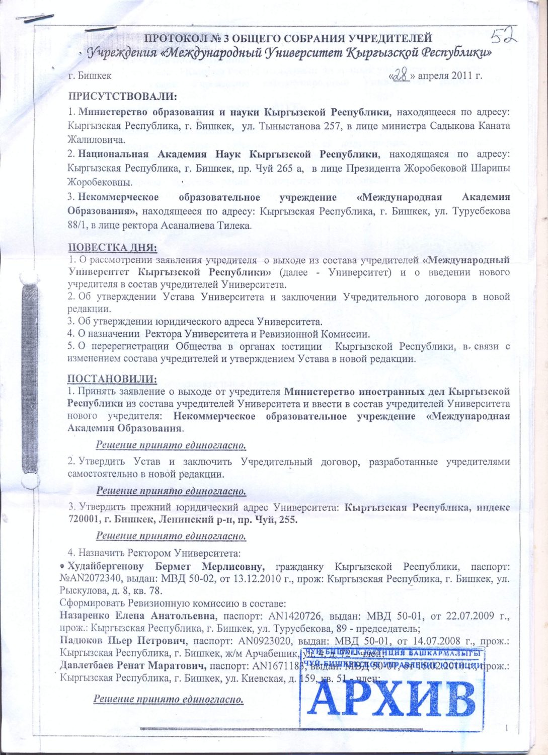 До 2011 года вуз сохранял статус государственного пока на собрании учредителей Министерство образования и Национальная академия наук не исключили МИД из состава учредителей. Его заменили на малоизвестную частную организацию «Международная Академия Образования» (МАО). Однако в документах нет информации, по какой причине это сделали.