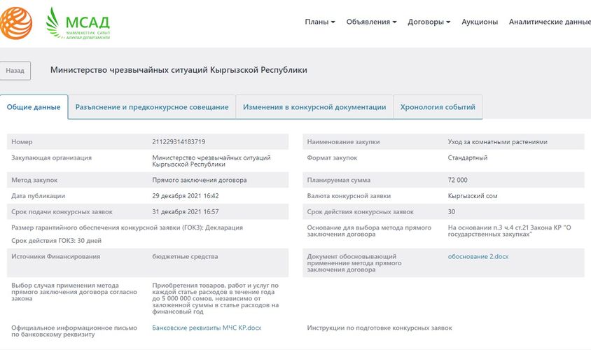 По его данным, на эти цели ведомство планирует израсходовать 72 тысячи сомов.