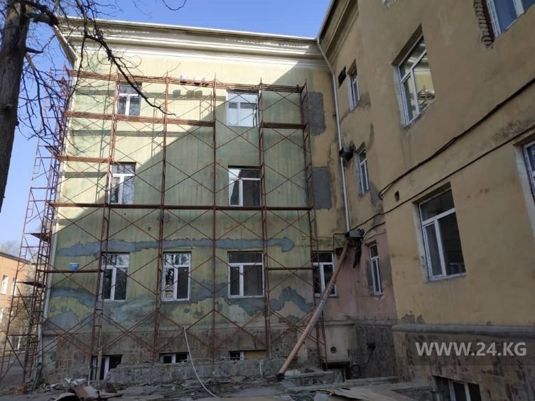 Четырехэтажное здание (на пересечении улиц Логвиненко и Московской) простаивало семь лет.«В 2020-м, в разгар пандемии, больных госпитализировали на бывшую базу «Ганси». Тогда на одном из заседаний республиканского штаба прозвучало предложение отремонтировать наш корпус, — рассказал 24.kg главврач Национального госпиталя Токтобай Маанаев. — В то время по стране массово велись строительно-ремонтные работы, этим занимался Госстрой, финансовые средства шли через них. Ведомство дало указание Чуйскому управлению капитального строительства составить дефектный акт и смету. Время было сжатое, стройкомпания была готова начать работы за свой счет. Я со своей стороны постоянно информировал правительство, премьер-министра, обращался и в Госстрой с просьбой выделить средства».