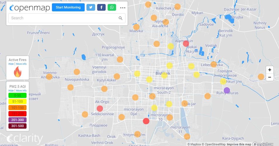 В рейтинге крупнейших городов мира по качеству воздуха World Air Quality Бишкек поднялся на 6-е место.