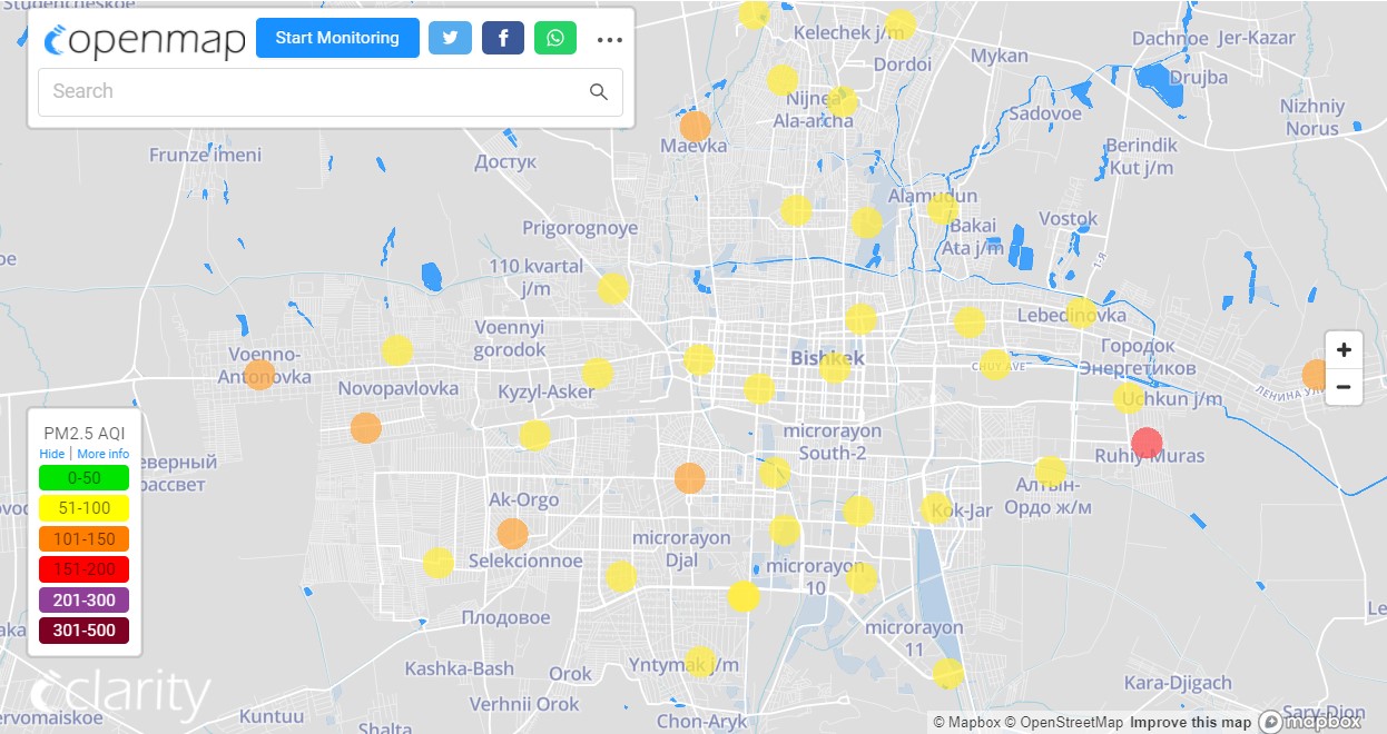 В рейтинге крупнейших городов мира по качеству воздуха World Air Quality Бишкек поднялся на 18-е место.