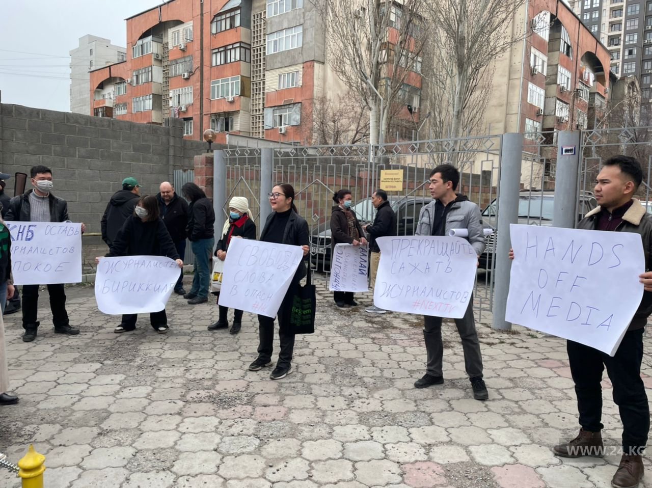 В Бишкеке возле Первомайского районного суда проходит мирная акция в поддержку задержанного директора телеканала Next TV Таалая Дуйшенбиева.