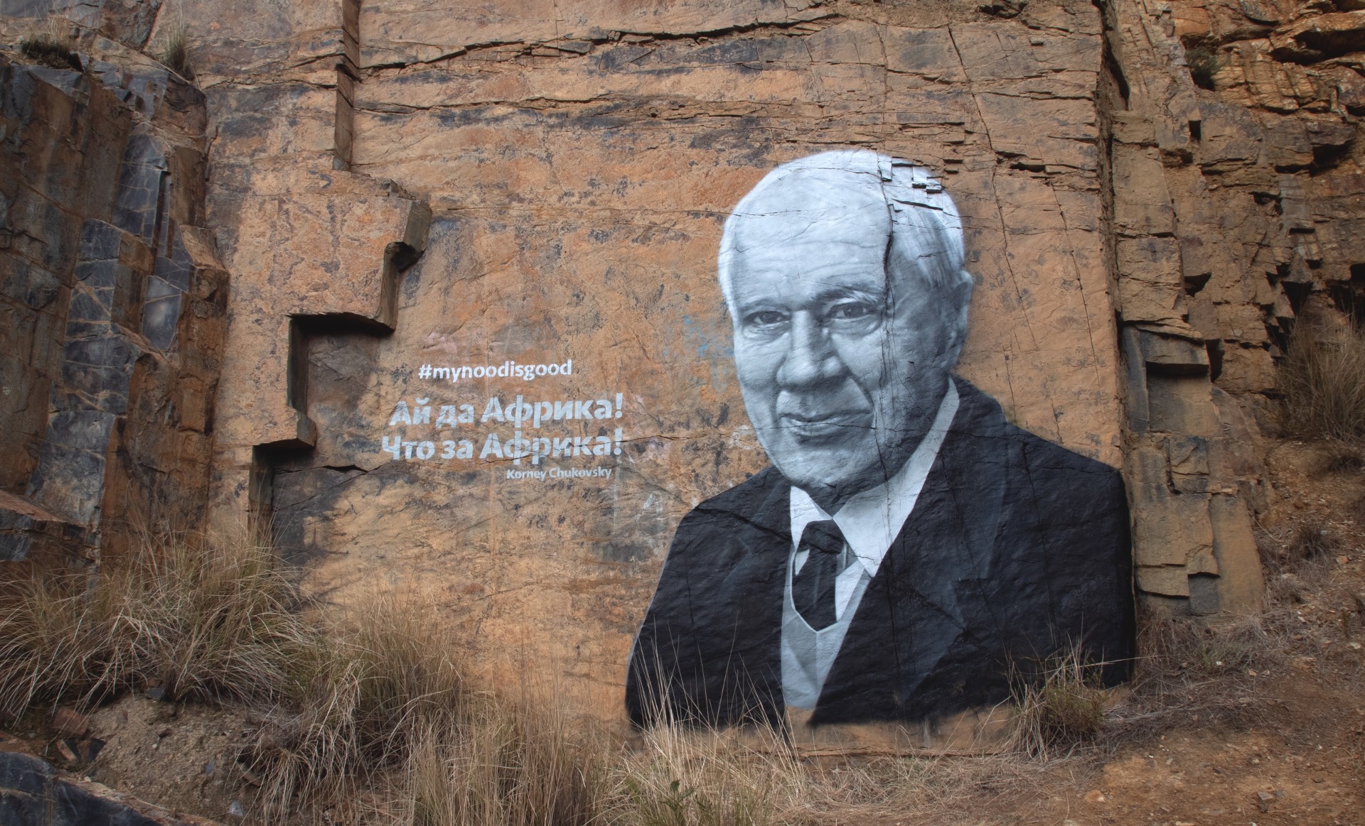 Уличные художники из Санкт-Петербурга Илья Иса и Артем Буржа создали граффити-портрет Корнея Чуковского на одной из скал в Кейптауне (ЮАР). Об этом команда сообщила на своей странице «ВКонтакте».