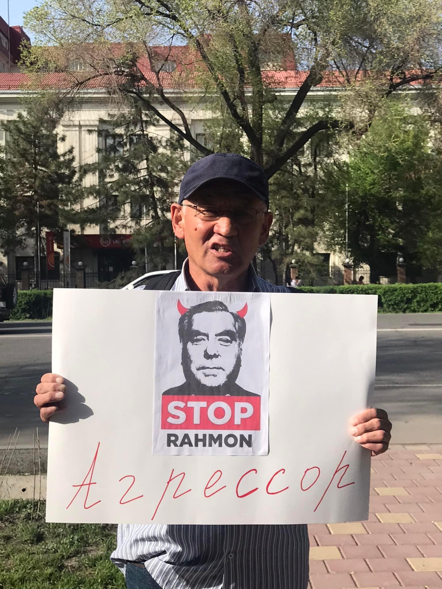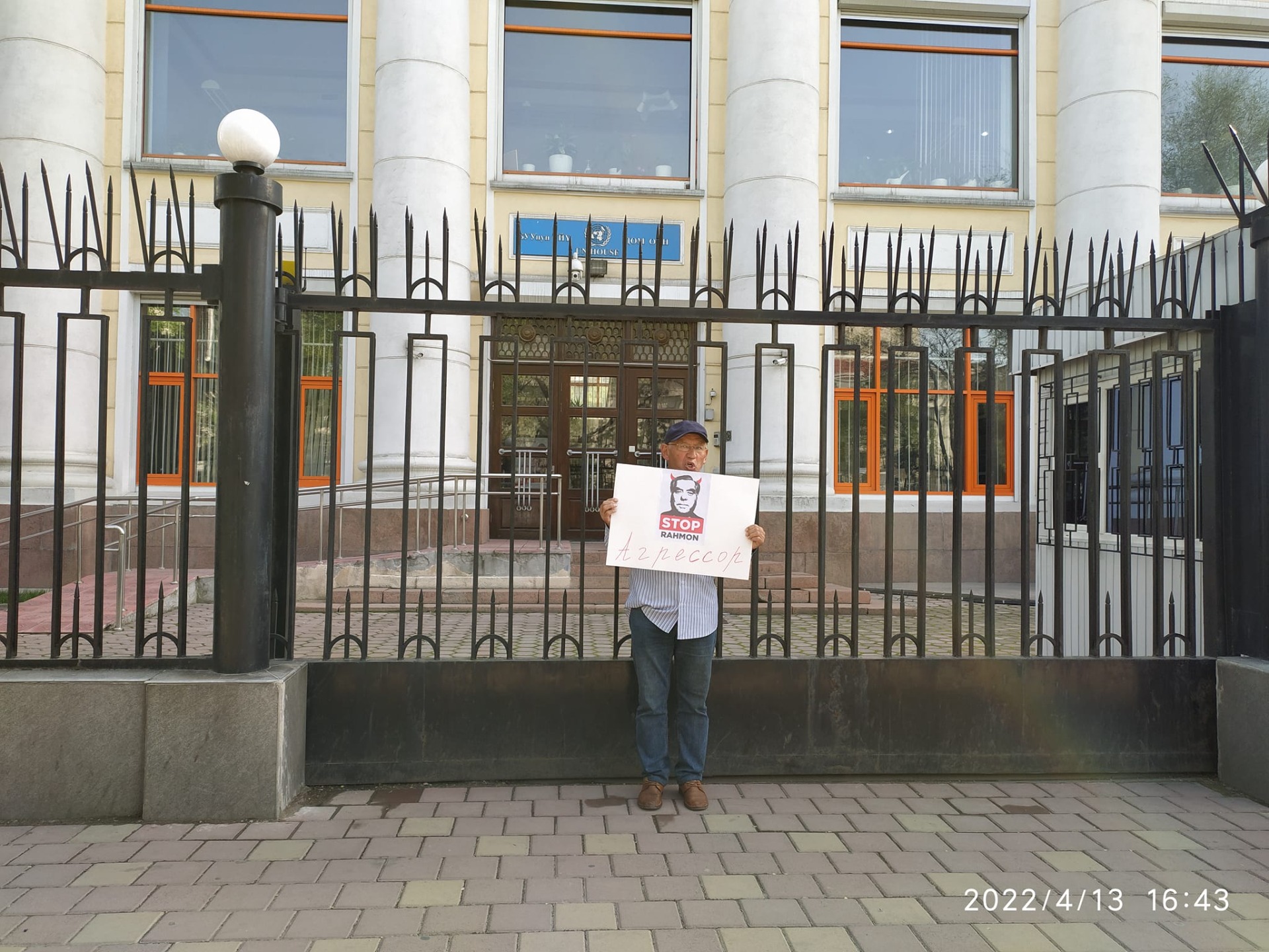 Активист Ондуруш Токтонасыров вышел на одиночный пикет к зданию ООН в Бишкеке. Фотографии опубликованы на его странице в Facebook.