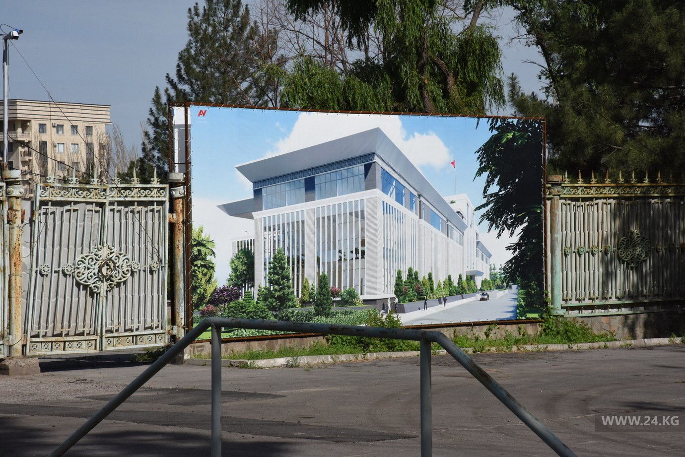 В Бишкеке на месте снесенной гостиницы «Иссык-Куль» уже вырыли котлован. А на демонтированной части забора установили баннер с фото будущего здания.