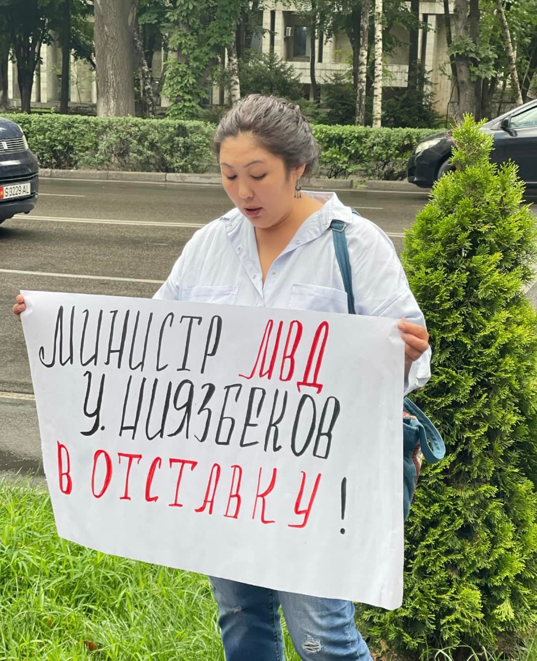 «Мы все помним о гибели Айзады Канатбековой, Бурулай Турдалиевой. Кто следующий? Сегодня мы видим насилие над 13-летней девочкой, что нас ждет завтра? Нужна не реформа МВД, нужна полная люстрация! Требуем отставки министра!» — заявила правозащитница.
