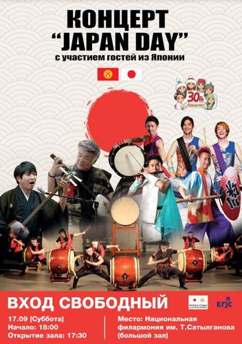 Гостей ждет насыщенная программа от популярных групп «Байсе» и «Цай» (Япония), а также «Ооэдодайко» (Кыргызстан). Музыканты продемонстрируют неповторимую технику игры на барабанах. До концерта в фойе пройдет Japan Fest, где можно больше узнать о стране.