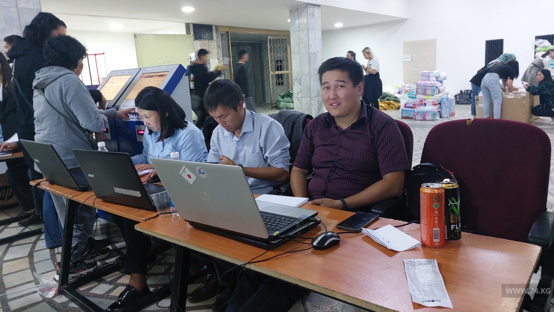 Для тех, кто хочет помочь пострадавшим материально, в здании установлены четыре терминала. Деньги можно перевести на счет аппарата полномочного представителя в Баткенской области. На месте волонтеры помогут с переводом средств.
